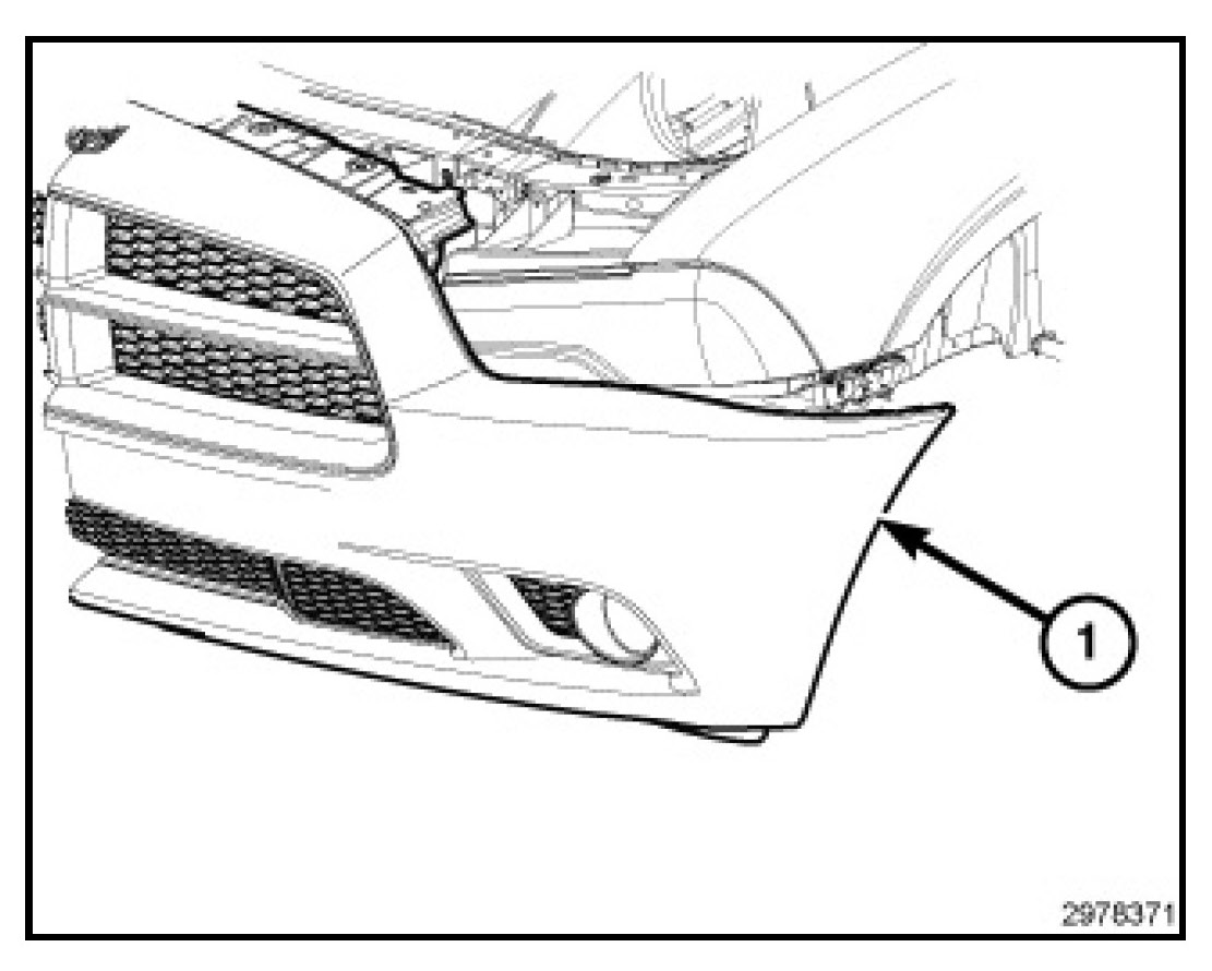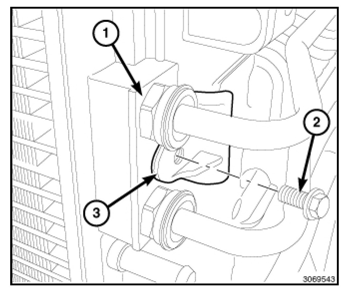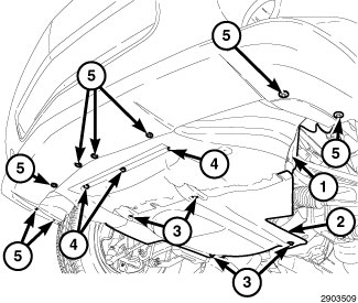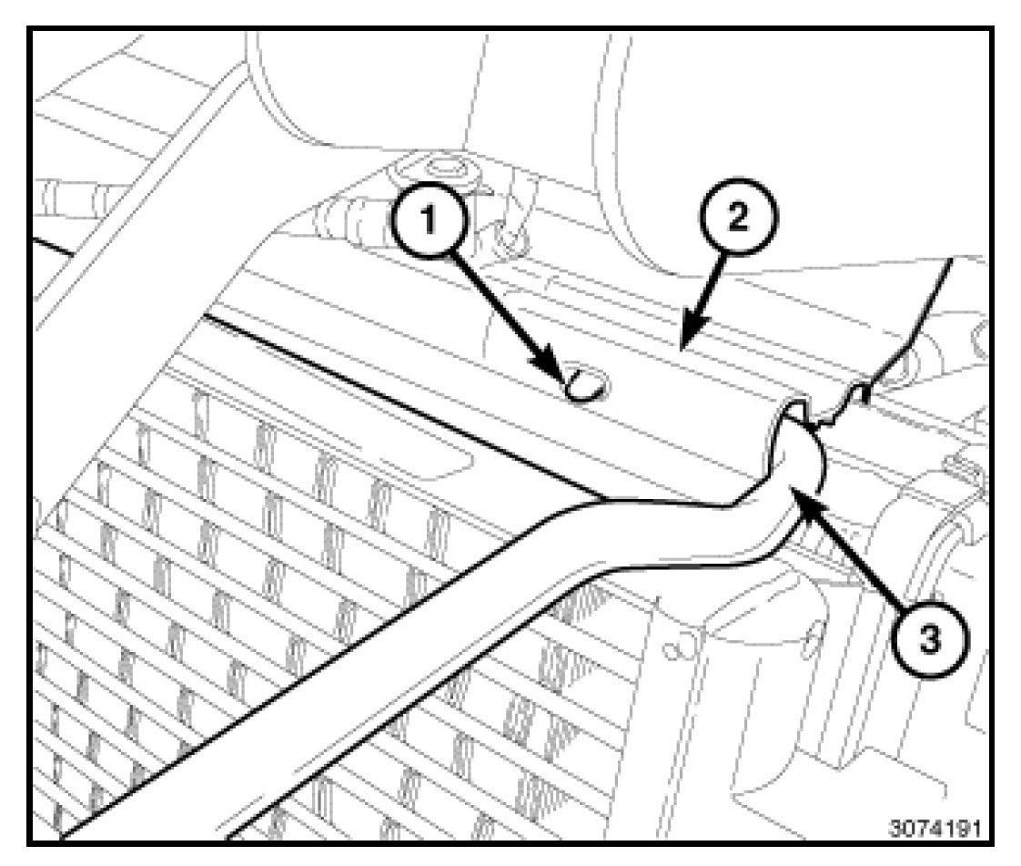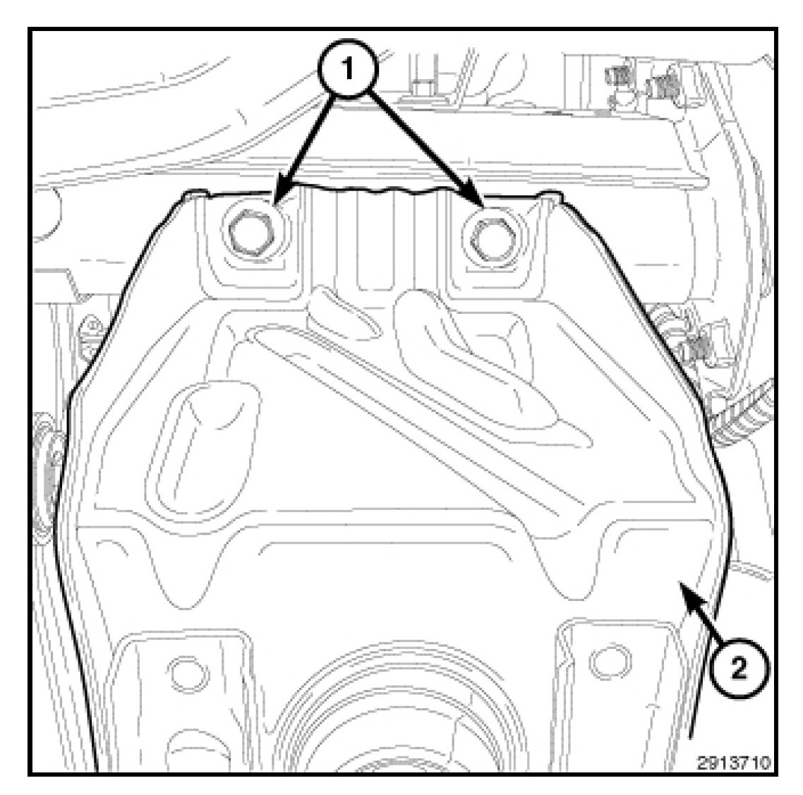 20. Using a suitable jack. Remove the lower radiator core support bolts (1).