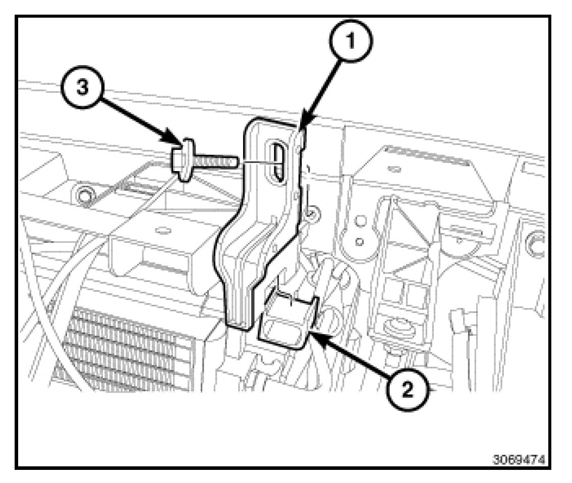 17. Carefully remove the upper shroud cover (2) by using a pick (3) to pull the cover retaining hole away from the clip (1) along the edge.