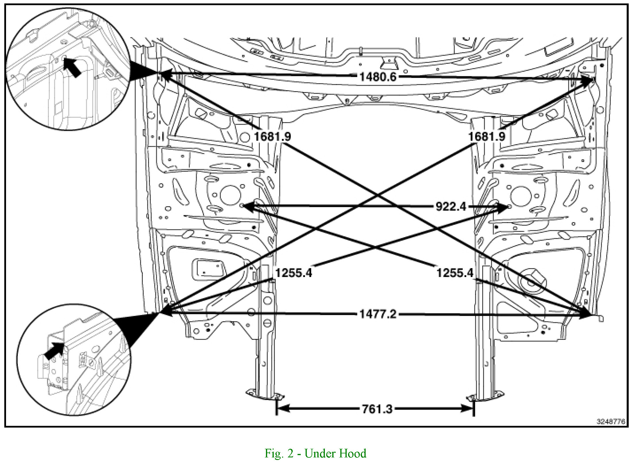 NOTE: Frame dimensions are listed in metric scale millimeter (mm). All dimensions are from center to center of Principal Locating Point (PLP), or from center to center of PLP and fastener location.