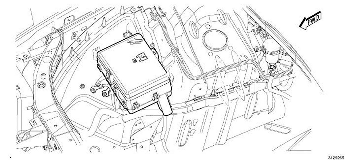 Front PDC is located in the engine compartment on the passenger side fender.