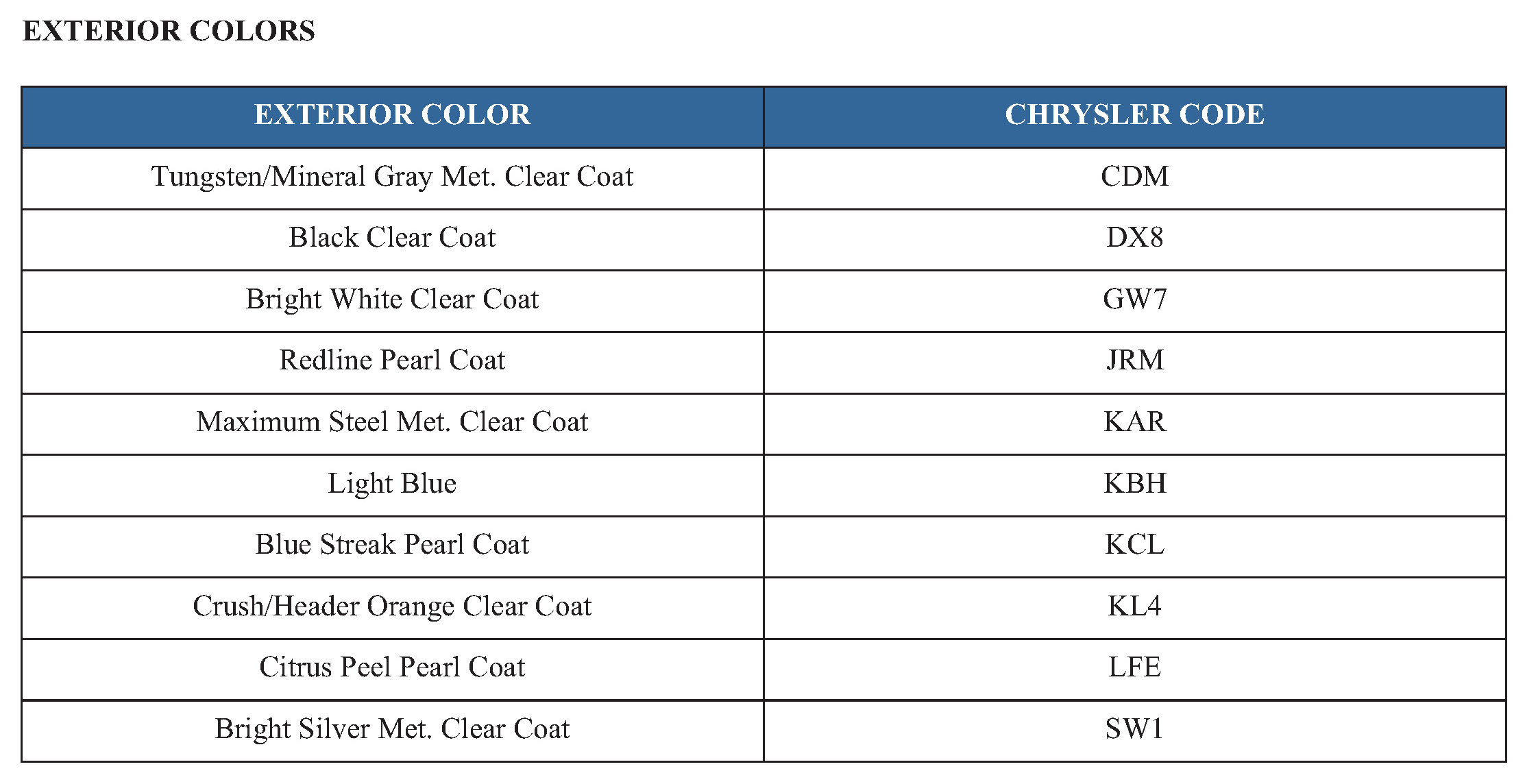 EXTERIOR COLORS
