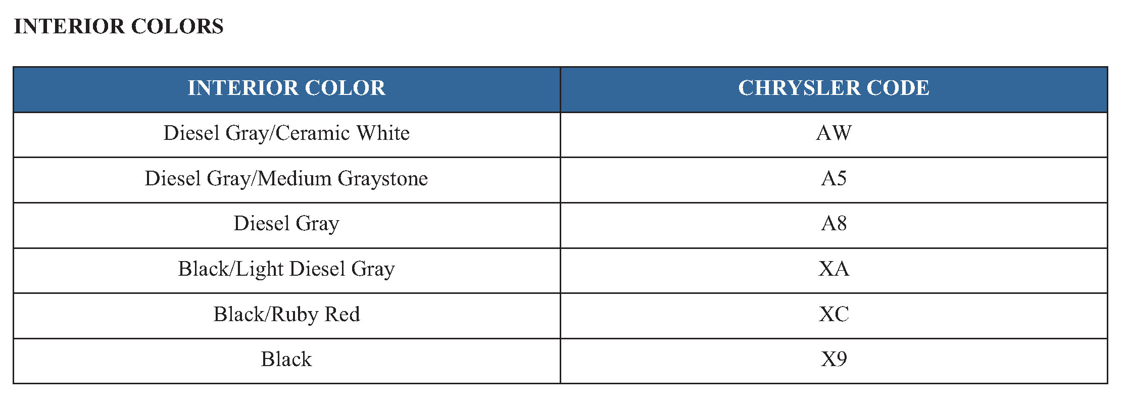 INTERIOR COLORS