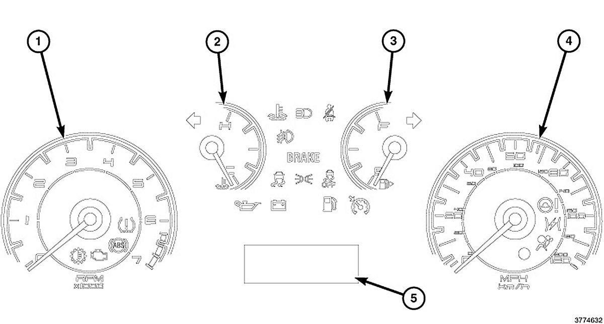 Besides an electronic display unit (5), the BASE IC for this vehicle includes the following analog gauges: