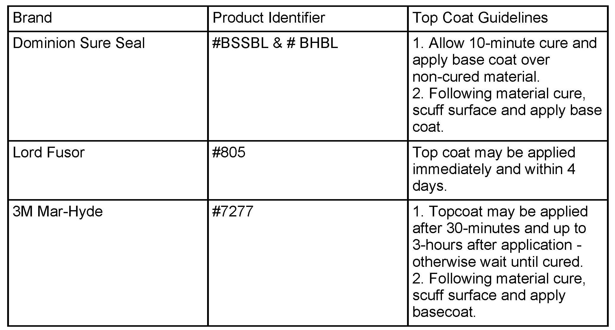 Of the materials tested, only the following satisfied the original engineering requirements for chip resistance and protection to the substrate. The Chrysler Group recommendations for repair materials are as follows: