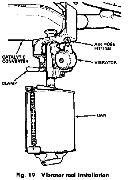 5. Position vibrator (part of tool J-25077) on converter and lock it in place, Fig. 19.