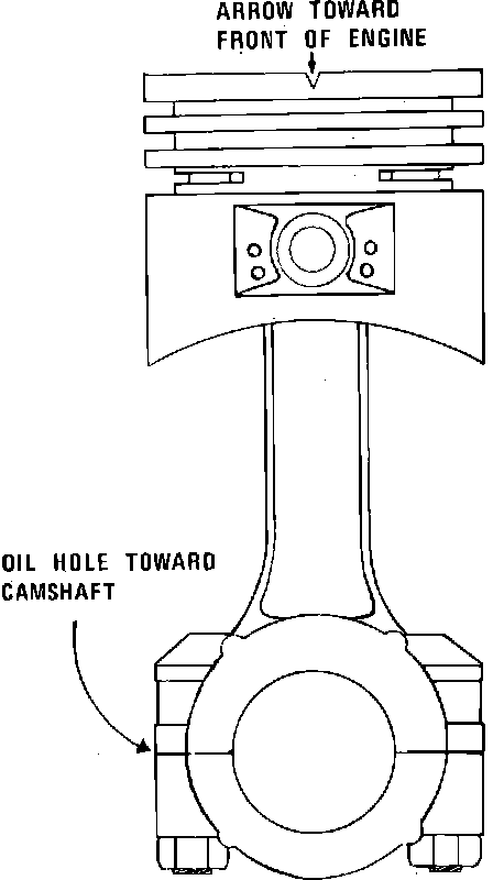 Pistons are marked with a depression notch or arrow on the top perimeter, Fig. 9. When installed in the engine, this notch or arrow must be toward the front of the engine. Always assemble rods and caps with the cylinder numbers facing the camshaft side of engine. Check side clearance between connecting rod and crankshaft journals. Clearance should be .010 - .019 inch.