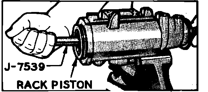12. Insert Rack-Piston Arbor into rack-piston against end of worm. Turn coupling flange counterclockwise, while holding tool tightly against worm, to force rack-piston onto arbor, and remove rack-piston from gear housing.