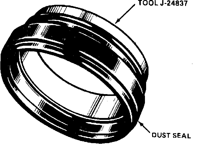 3. Lubricate dust seal and tool J-24387 with clean brake fluid, then place dust seal on tool, allowing 1/4 inch of tool to extend past small lip of dust seal.