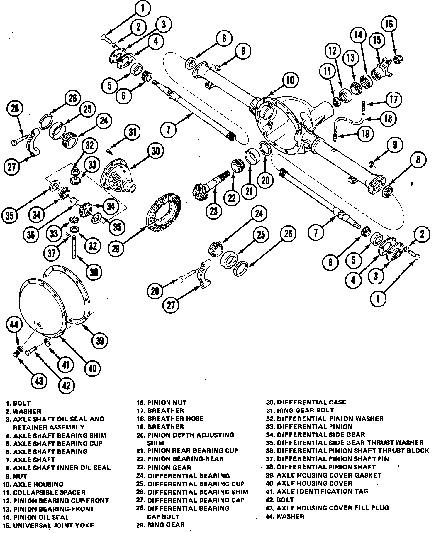 Fig. 1 Rear axle assembly (typical). 7-9/16 in. axle: