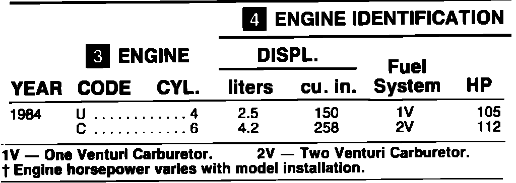ENGINE IDENTIFICATION 1984: