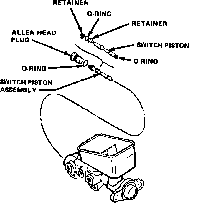 The switch mounted directly in the master cylinder assembly. Whenever there is a specified differential pressure, the switch piston will activate the brake failure warning switch and cause the brake warning light to glow.
