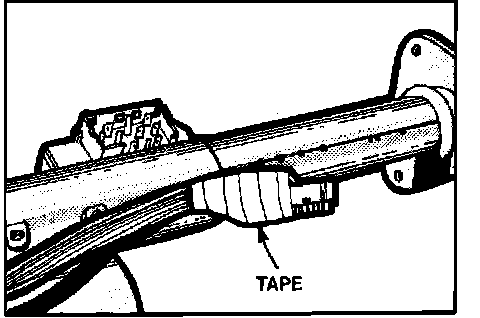 9. Fold connector over harness and wrap with tape to avoid snagging. Raise column and pull harness out of column. On models with tilt column, raise column and remove plastic wiring harness protector.