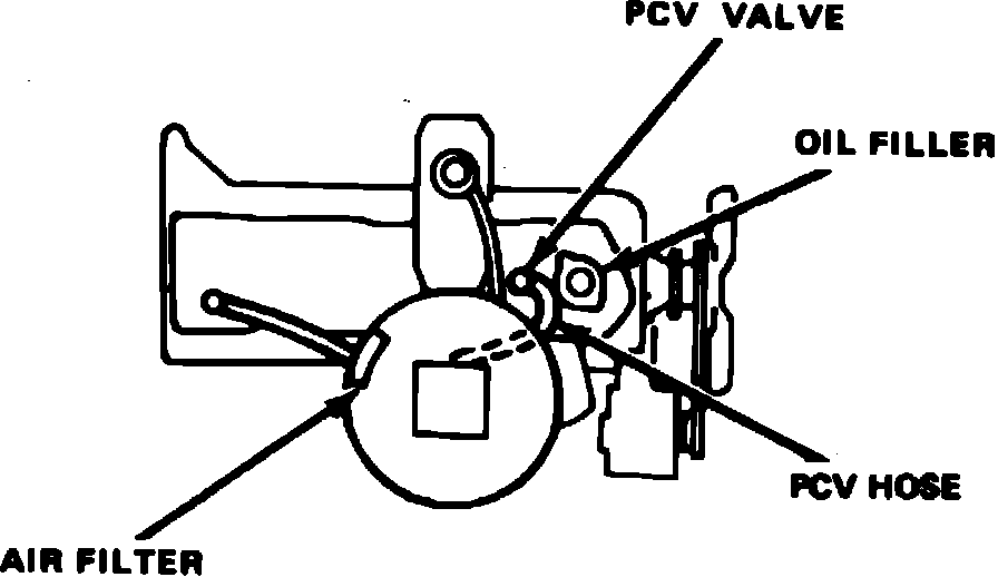 If crankcase vapor pressure (blow-by) exceeds the flow capacity of the PCV valve, airflow in the system reverses. Crankcase vapor is then drawn through the air cleaner element and carburetor and burned along with the air fuel mixture.