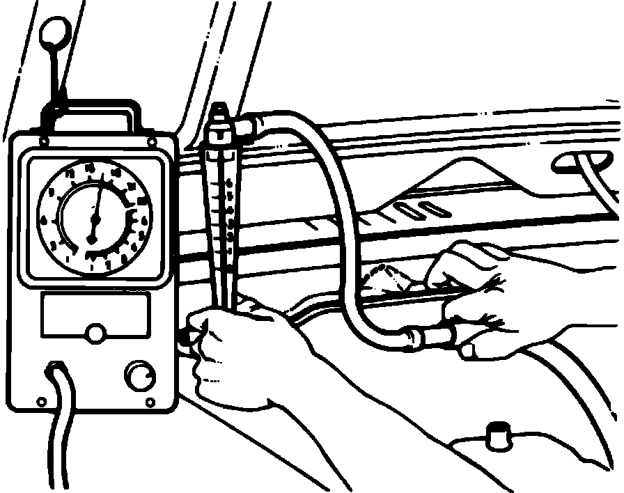 2. Connect vacuum gauge to read intake manifold vacuum. The PCV valve must be in a horizontal position and lightly tapped during testing.