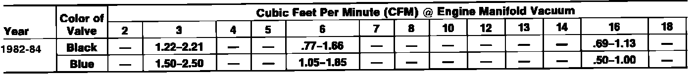 6. If valve flow is above or below the chart specifications, clean or replace valve.