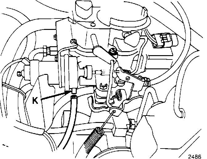17. Remove the plug and connect the vacuum hose to the vacuum actuator.