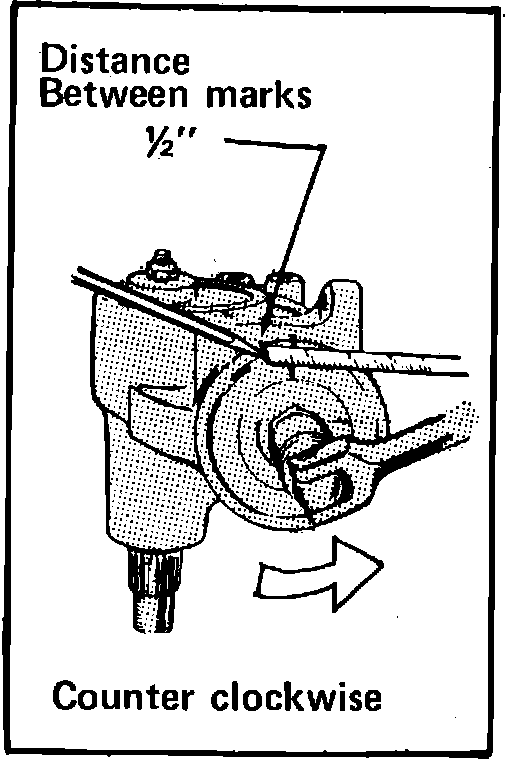 2. Draw a line on gear housing and plug, and a second line 1/2 inch counter clockwise on housing only.