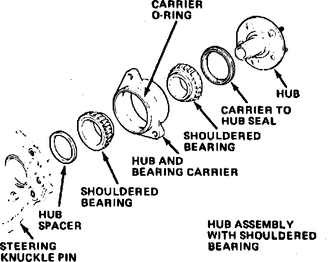 1. Fill steering knuckle pin, hub, bearing carrier and lip type seal cavities with lithium base wheel bearing lubricant.