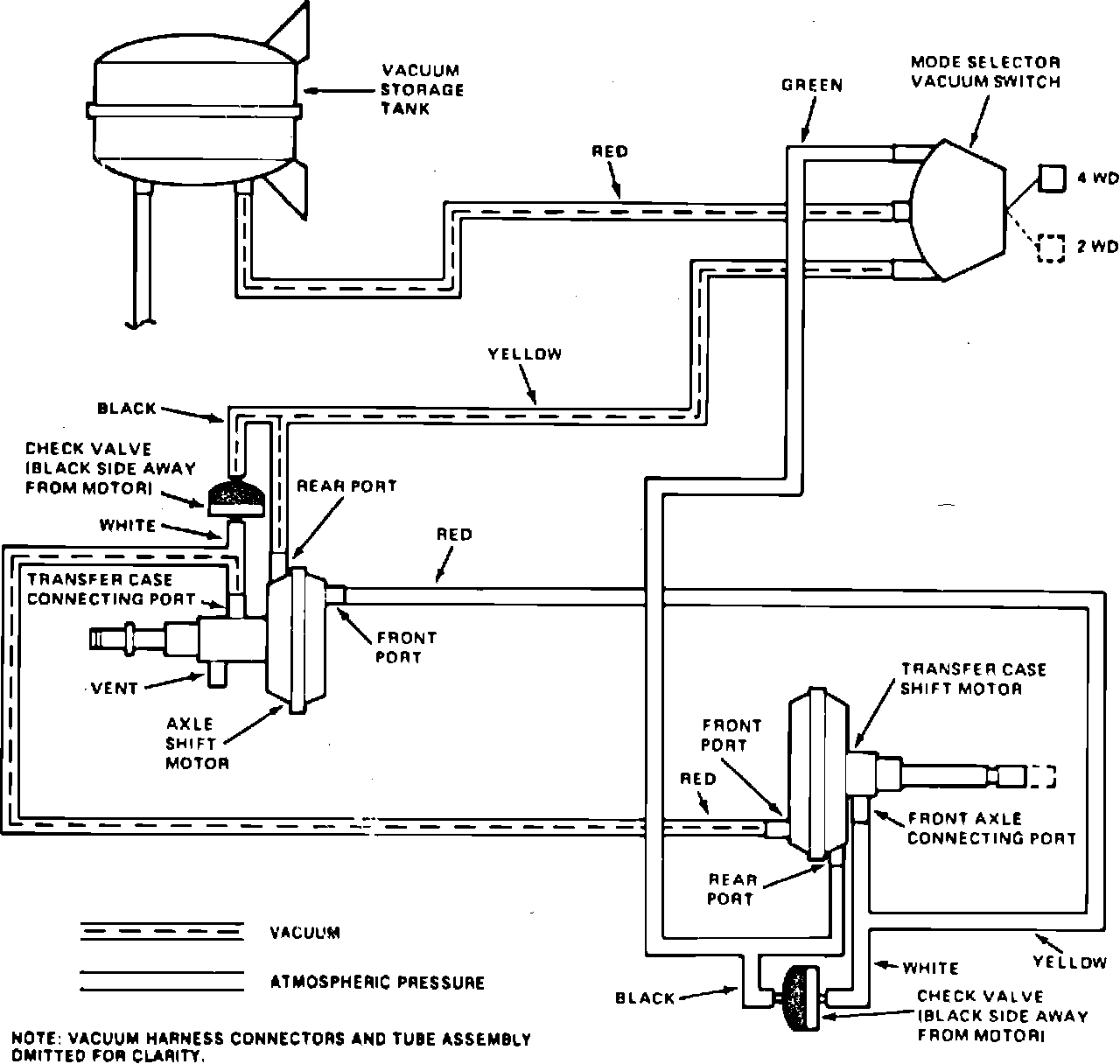 9. Check vacuum and tubes for leaks or damage, repair as necessary. If transfer case motor is still inoperative, refer to next step.