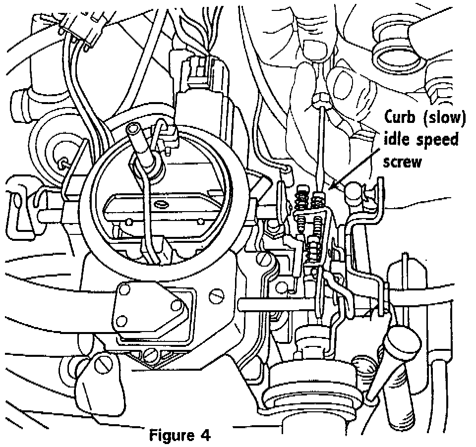 7. Using the curb (slow) idle speed adjustment screw, adjust the curb idle speed to 680 RPM (Figure 4).