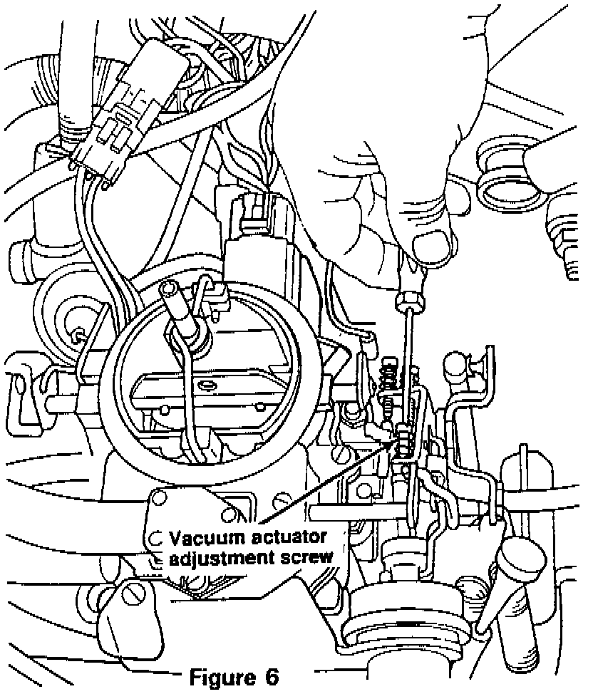 10. With the Sole-Vac throttle positioner fully extended, set the idle speed to 1100 RPM using the vacuum actuator adjustment screw on the throttle lever (Figure 6).