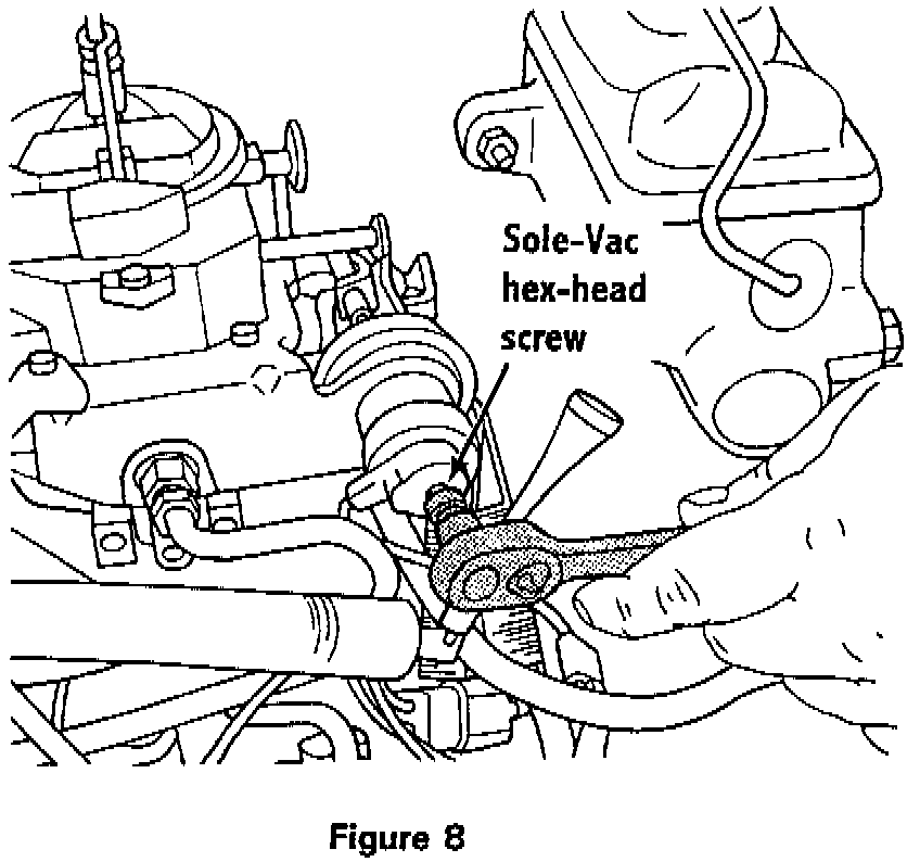 14. Adjust the holding solenoid idle speed to 900 RPM using the Sole-Vac throttle positioner hex-head adjustment screw (Figure 8).
