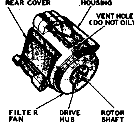 The air pump is a positive displacement unit that requires no maintenance, Figs. 2 and 3. The early units incorporated a replaceable element type air filter and pressure relief valve. Later units incorporate only a replaceable centrifugal type air filter. The pressure relief valve on early units is located in the exhaust cavity and encloses a preloaded spring, a seat and pressure setting plug.
