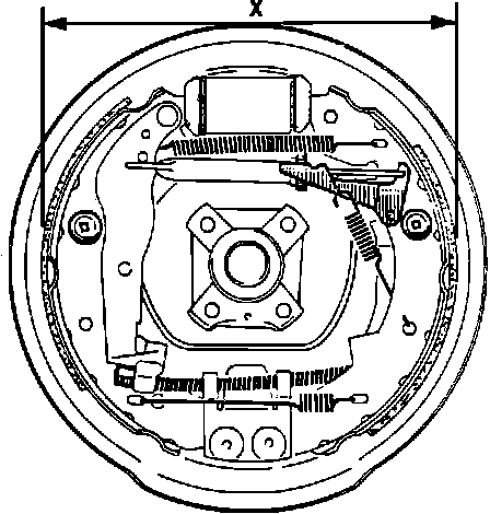 7. Using star wheel adjuster (D), adjust rear brake shoes to obtain dimension X. Dimension X should be 8.97-9.0 inch.