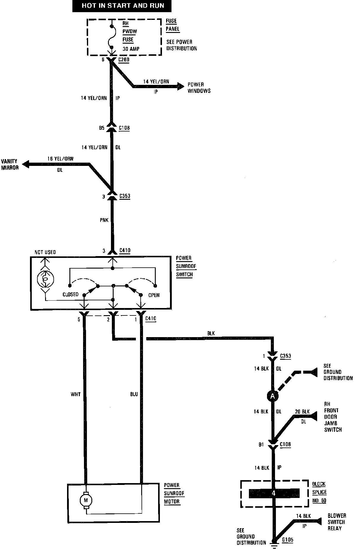 Power Sunroof Wiring Circuit: