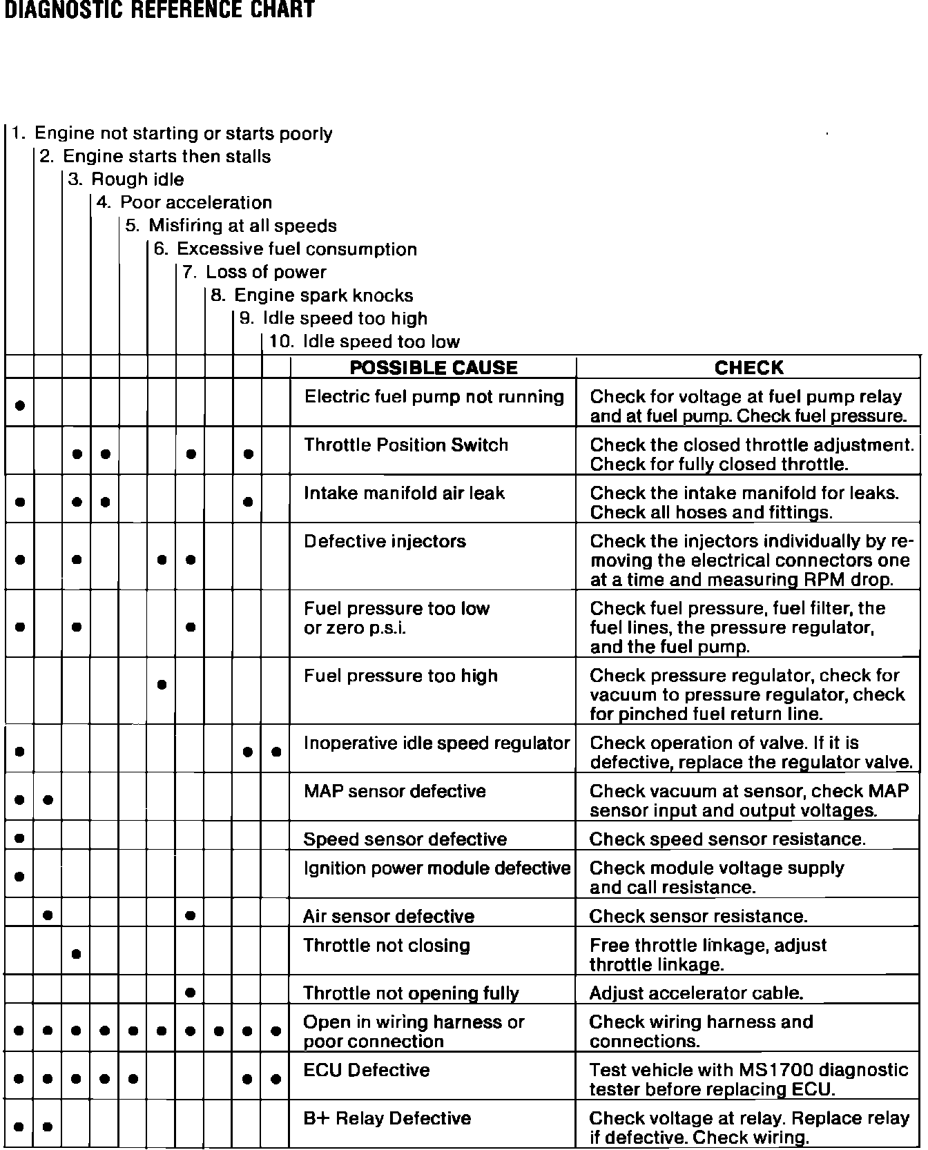 Fig. 6 Fuel injection system troubleshooting chart: