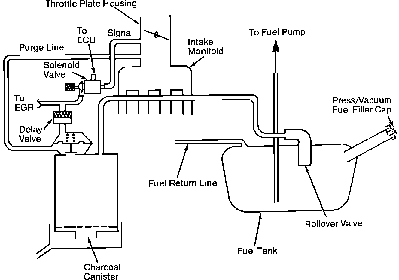 Fig. 1 Evaporative emission control system vacuum schematic. 4-132/2.2L Engine: