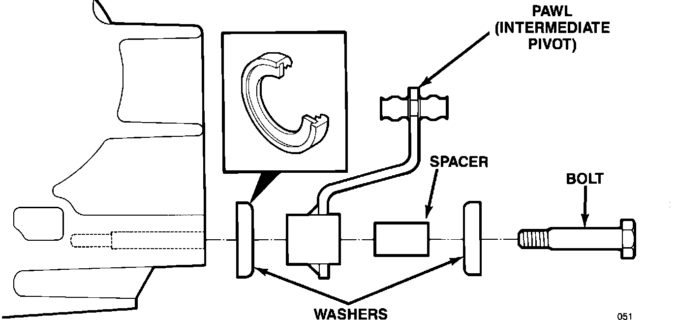 5. Tighten the pawl attaching bolt to 13 ft.lbs. (17.4 N-m) torque.