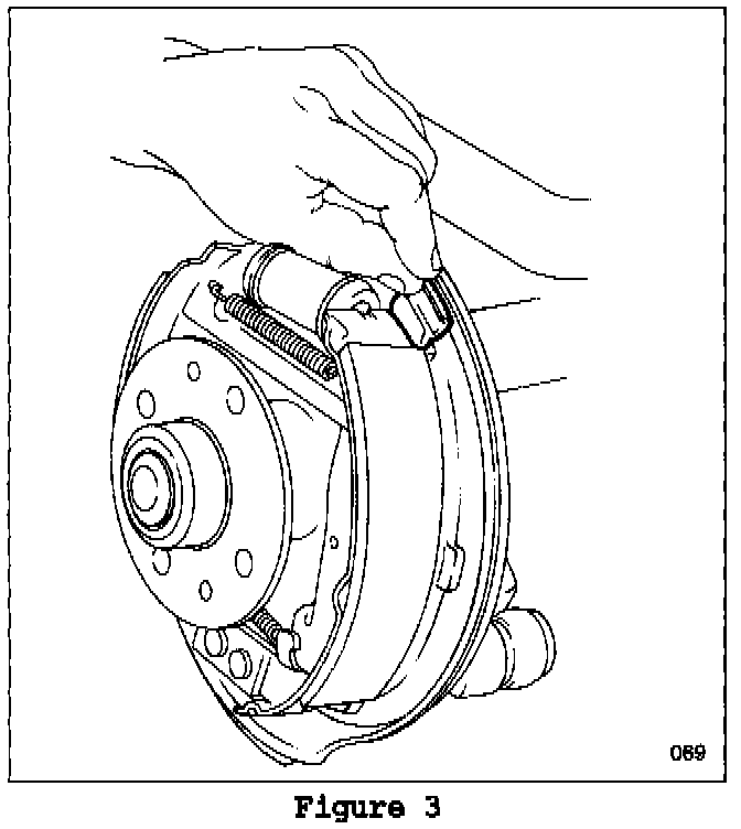 5. Carefully slide the six silencer pads into position over the brake shoe contact points on the backing plate (Figure 3).