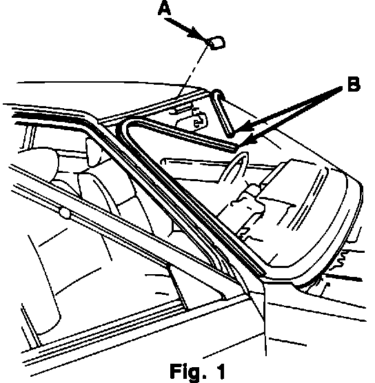 1. Remove the clip (A) from the center of the upper windshield trim molding (Fig. 1).