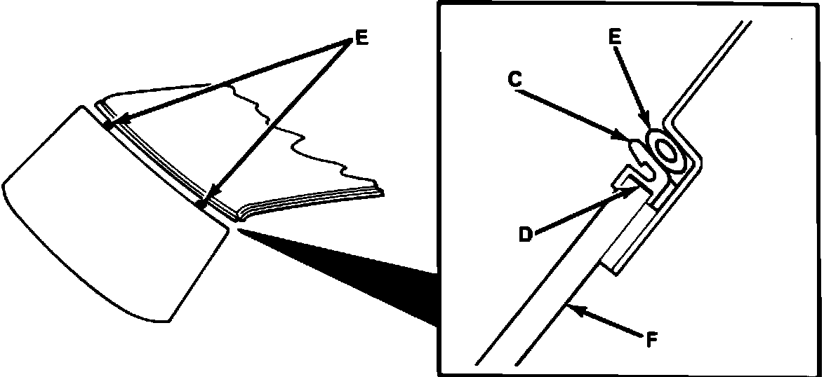 5. Carefully clean the upper edge of the windshield (F). Use 3M General Purpose Cleaner, P/N 08984, or equivalent.