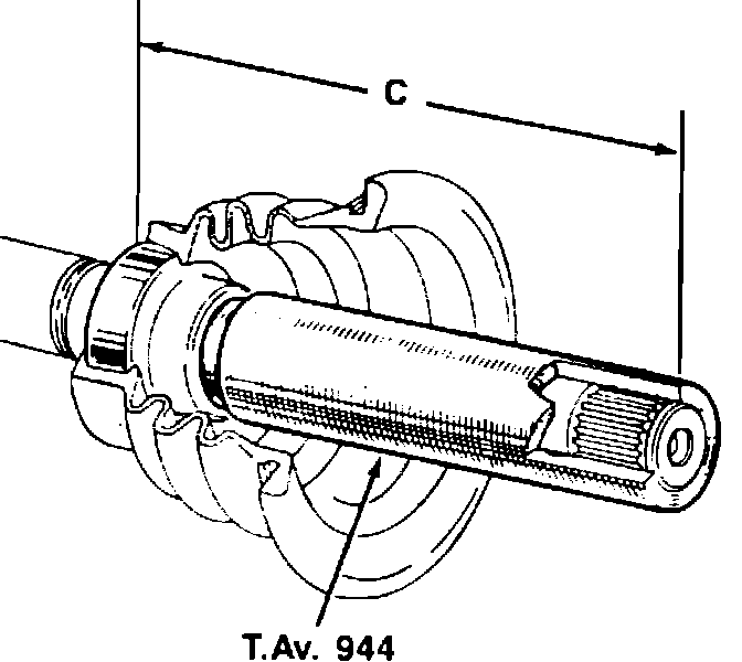 6. Press boot and bearing onto shaft until tool T.Av.944 bottoms against shaft. At this point, distance (C). should be approximately 5.85 inches. Do not attempt to install the bearing with a hammer or damage may result.