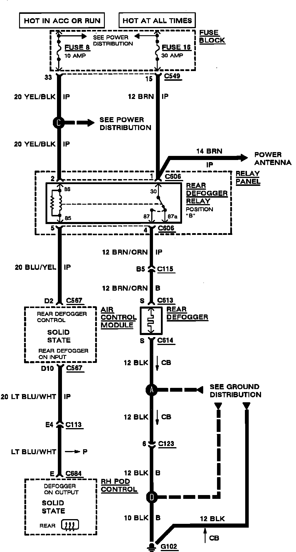 Rear Defogger Wiring Circuit: