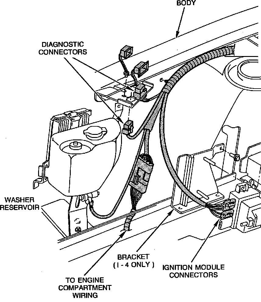 The Diagnostic Connectors are found on the right side of the engine compartment, next to the washer reservoir, and are protected by yellow covers.