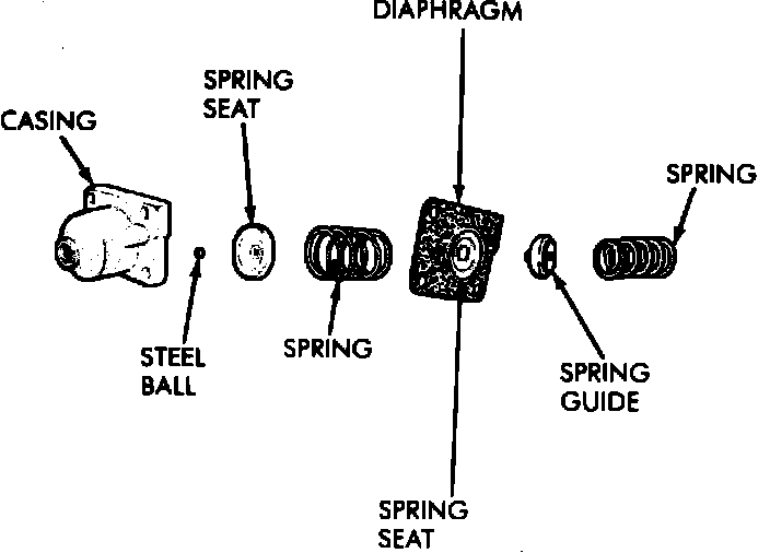 The fuel pressure regulator is an overflow type attached to the throttle body. The regulator is adjustable and controls the amount of fuel system pressure available to the fuel injector. Fuel pump output pressure is above that needed to operate the fuel system, and excess fuel is returned to the fuel tank through the regulator via the fuel return line. The regulator consists of a spring chamber, a calibrated spring, a diaphragm, and an adjusting screw. An aluminum plug seals the adjusting screw hole. When fuel under pressure enters the top of the regulator, the relief valve and spring are forced down, opening a passage to the fuel return line. A pivot on top of the diaphragm keeps the diaphragm from tipping. The amount of pressure required to force the regulator spring down determines the fuel system operating pressure. The adjustment screw allows that pressure to be set. Turning the screw in will increase the fuel pressure, and turning it out will decrease the fuel pressure. A small vent passage in the throttle body, vents the spring chamber to atmosphere, and the injector tip is also vented to atmosphere. Due to this venting process fuel system pressure bleeds rapidly to zero when the engine is not running.