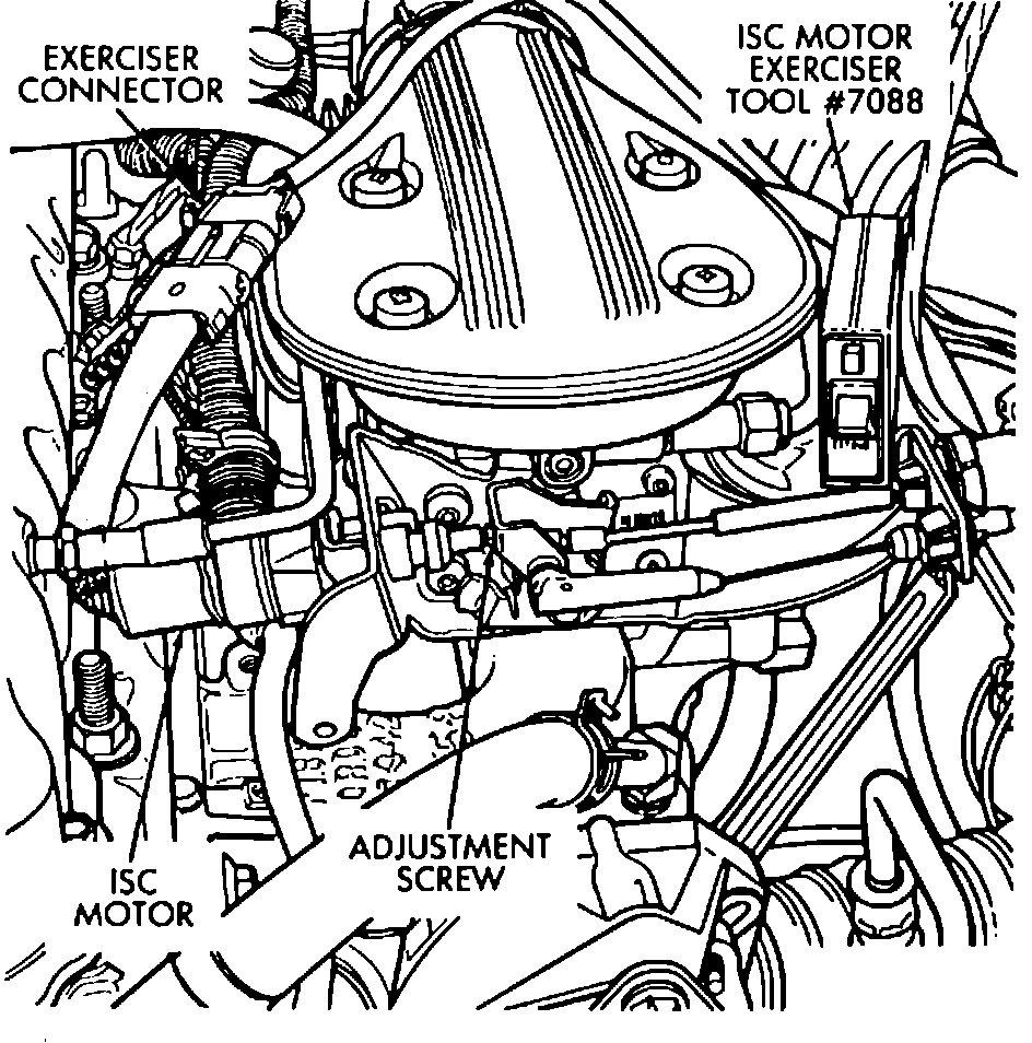 6. Remove tool 7088 and connect the idle speed motor electrical connector. Idle speed should automatically return to normal within a few seconds.