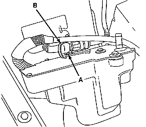 2. Position tie strap (B) ensuring wiper/washer connector will separate. Do not cut tie strap.