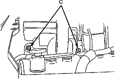 3. Remove two retaining nuts (C) holding regulator housing to inner fender.