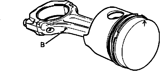 Assemble pistons to rods with the arrow on the piston facing toward the flywheel end of engine and oil hole on the connecting rod facing away oil filter side of engine, Fig. 19.