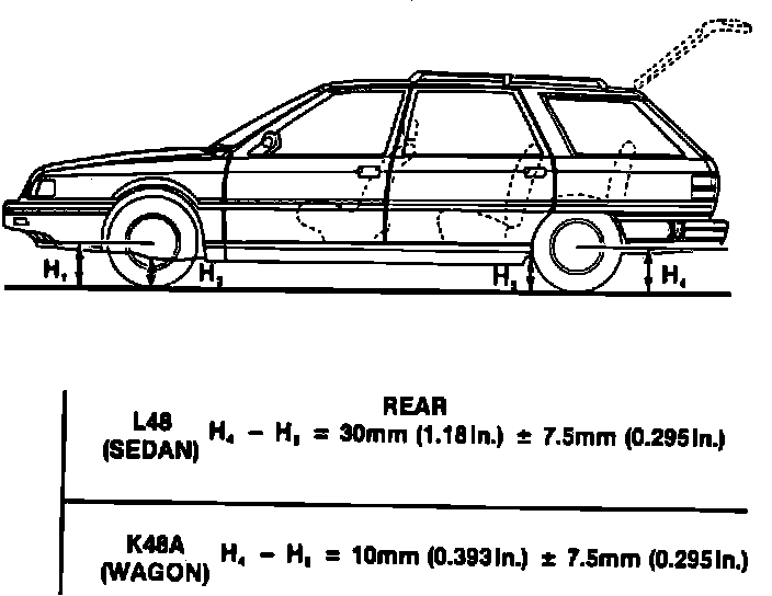 Only the rear suspension height is adjustable. If front suspension ride height is not within specification, check suspension for worn and damaged components. The vehicle rear ride height is adjusted by rotating the suspension bars clockwise or counterclockwise from its original position.Fig. 3 Vehicle Ride Height Specifications: