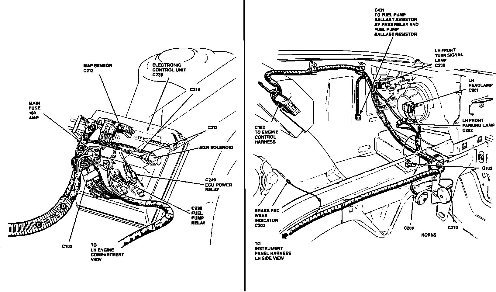 Electronic Control Unit & LH Side Of Engine Compartment Components:
