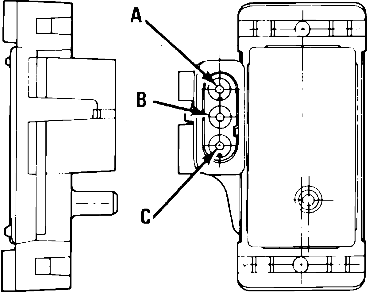 4. With engine Off and ignition switch On, measure supply voltage at sensor connector terminal C. Supply voltage should be 4.5---5.5 volts.