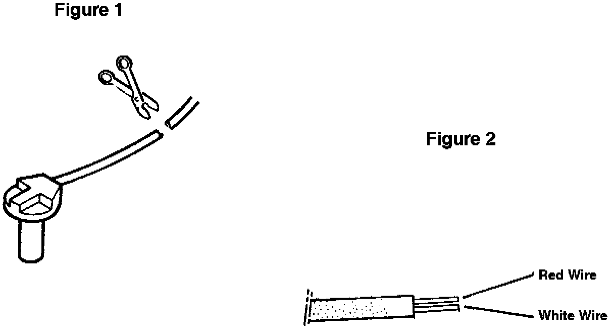 First, cut the leads (See figure 1) and remove the insulation. Connect the ohm meter to the red and white wires (See figure 2).