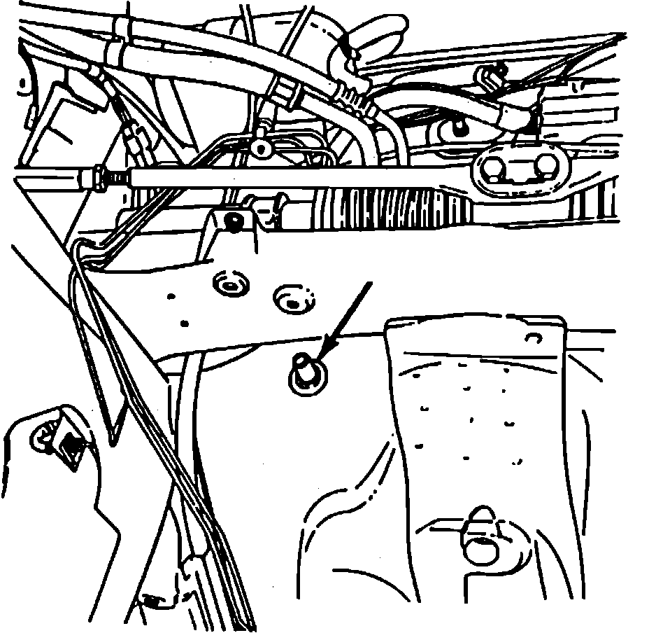 14. Tighten nut located near parking brake release handle and nut which is located on passenger side kick panel.