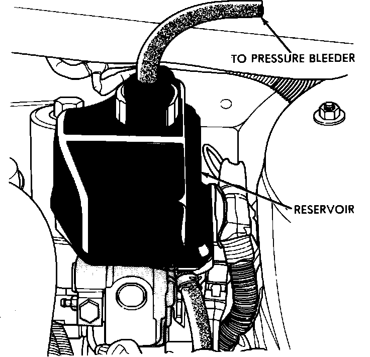 5. Attach bleeding equipment to bleeder adapter. Charge pressure bleeder to approximately 20 psi (138 kPa).