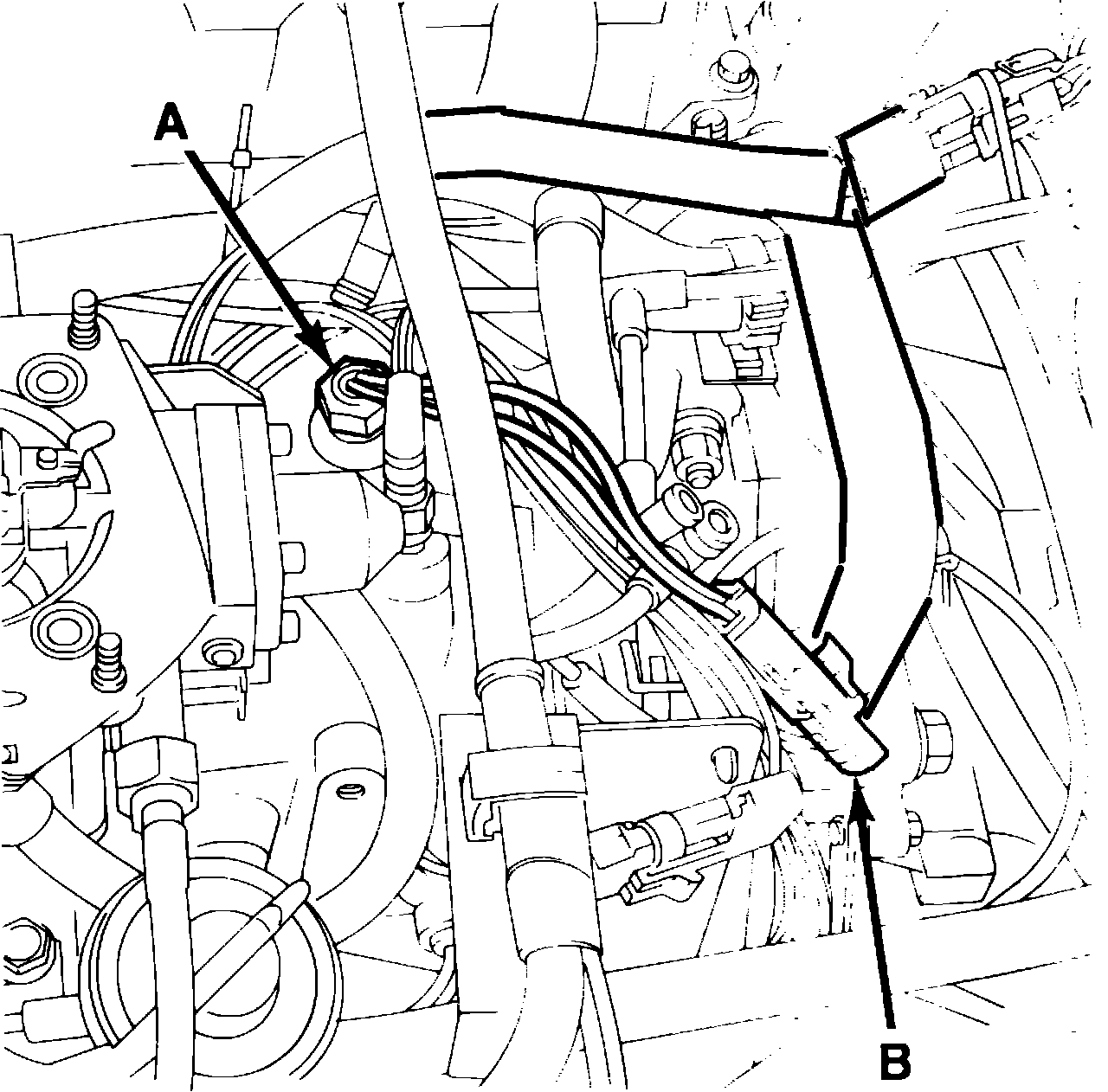 1. Disconnect MAT sensor electrical connector (B), then unscrew MAT sensor (A) from intake manifold, Fig. 8.
